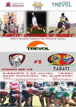 El próximo 4 de julio se jugará en el Clariano un partido de Rugby entre Estudiantes Rugby Club de Valencia y Taravi Rugby Unión. Se jugará este partido amistoso de exhibición en beneficio del Projecte Trèvol.