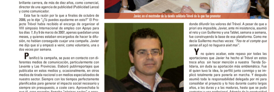 El passat dimecres dia 28 de setembre va tindre lloc a la seu d’AITEX la presentació del programa AJUDES SOCIALS 2022. L’Associació Trèvol va presentar el programa “UNA OPORTUNIDAD DE TRABAJO, UN PROYECTO DE VIDA. EMPLEO CON APOYO ASSOCIACIÓ TRÈVOL”, que ha estat valorat favorablement i ens han concedit una ajuda de 6.000 €. Des …